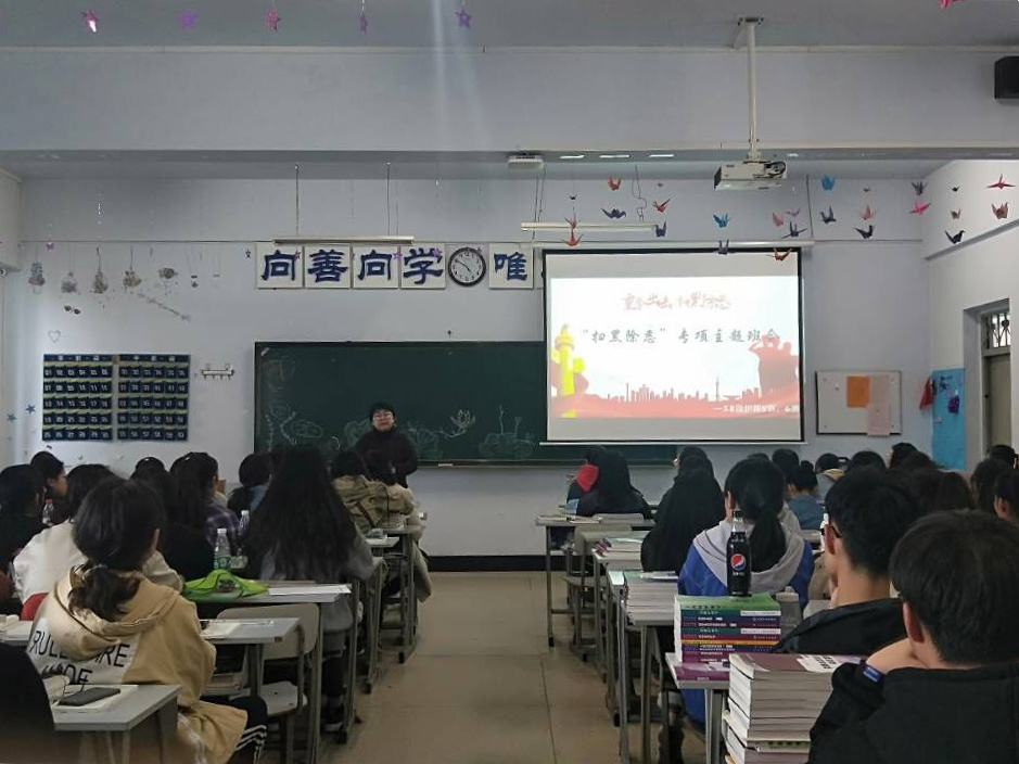 各在校班辅导员召开主题班会,对全体学生进行专题教育,切实做好“扫黑除恶”相关内容的普及;通过教育和自查,达到加强法制教育,严肃校规校纪,规范学生行为的目的,使学生认识到校园黑恶势力、欺凌行为、校园不良网贷的危害性。同时开展思想政治教育和安全教育,促进学生身心健康,构建平安校园、和谐校园。