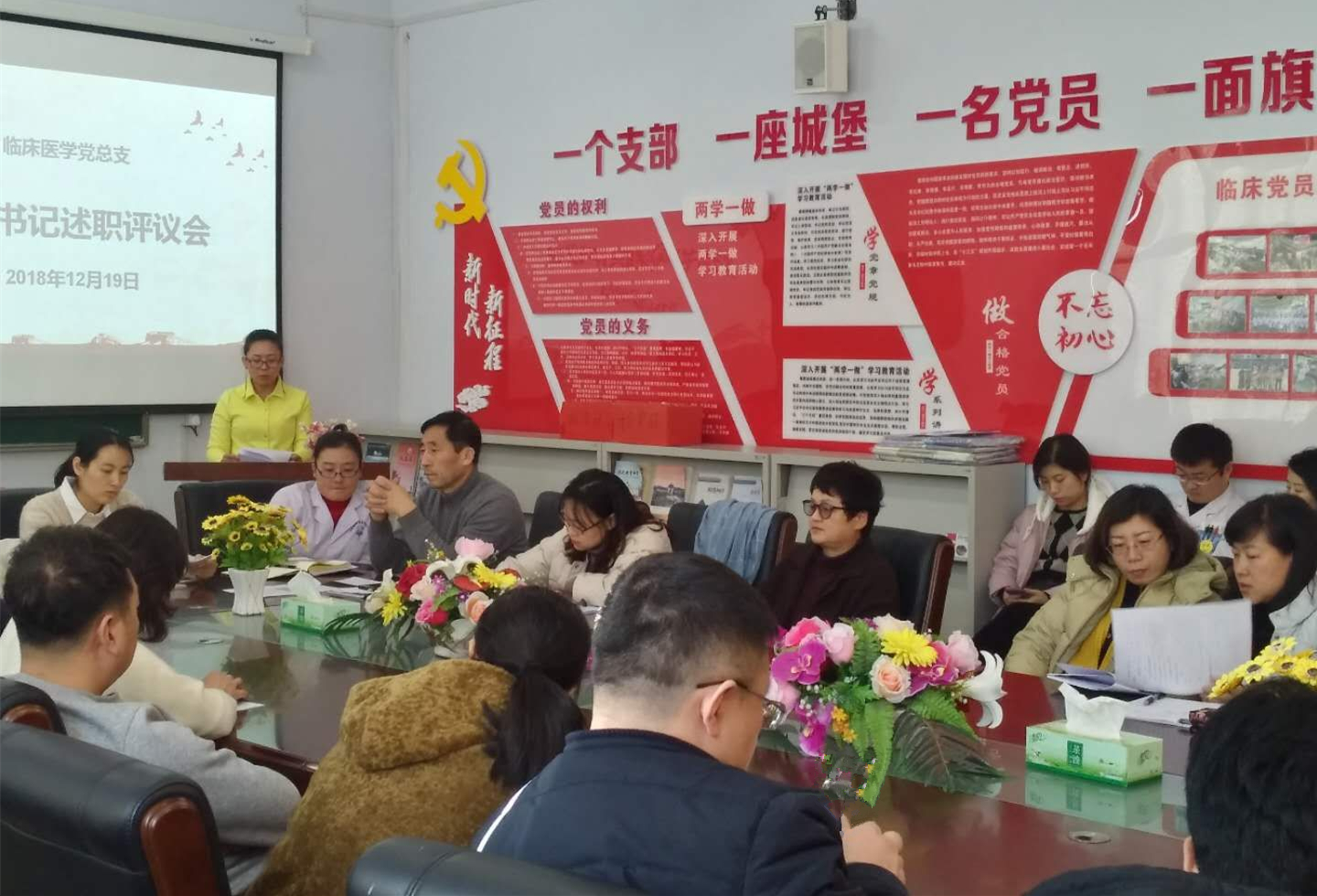 12月19日中午,临床医学党总支2018年度党支部书记述职评议会在医学楼党员活动室举行。校组织部唐诗扬,学院民主党派人士代表,党外人士代表应邀出席会议,总支全体党员参会。会议由党总支书记王才主持。