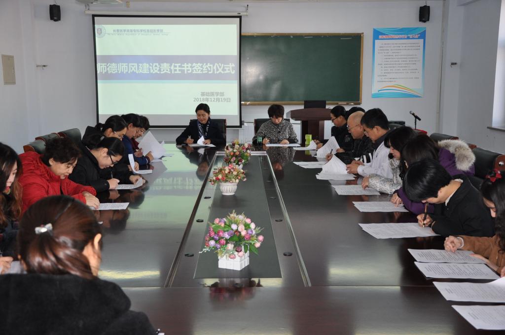 会上,教职工与院部郑重的签订了师德师风责任书,大家表示要爱岗敬业、依法执教、为人师表,廉洁从教、团结协作、热爱学生、为实现学校的百年梦想不懈努力!(文:任佳伟 图:魏玺峰 审核人:王春梅 基础医学部供稿)