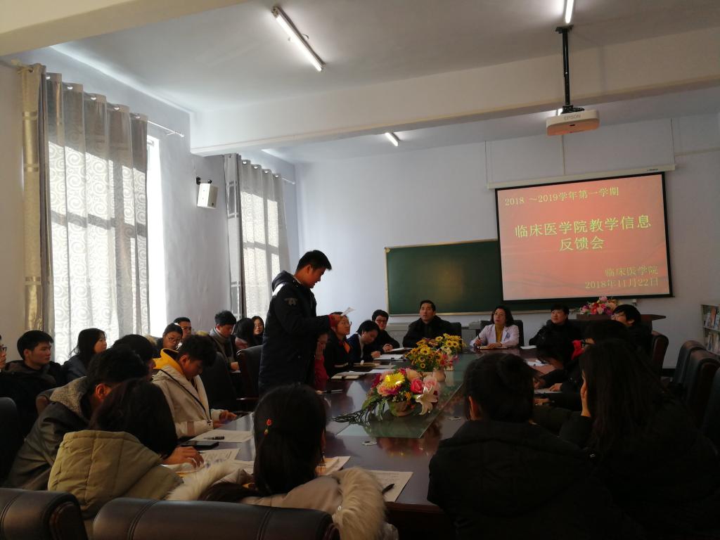 会前,临床医学院组织各班学习委员在班级内搜集对教学方面的反馈信息。会上,各班学委各抒己见,分别就课程设置、课程安排、教学效果、教材、考试、师资安排、早操晚自习等几个方面提出了问题和建议。