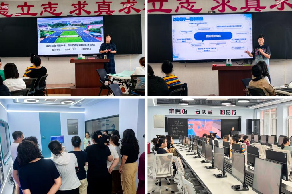 8月22日,我校健康学院院长张虹以《虚实融合·赋能未来:虚拟仿真实训教学应用探索》为题,系统讲解了小儿推拿,同时演示智能推拿模拟人、VR经络腧穴定位系统等设备。随后带领培训学员培训参观、体验“虚拟仿真实训教学应用”,在信息化、智能化环境中开展心肺复苏等高难度技能训练。下午,在我校总督学周银玲教授与杨洋老师组织下,各组依次展示教学竞赛方案,周银铃教授及杨洋老师对5个小组设计方案分别进行了细致点评,指出:“指出各组主题紧扣“健康中国”主题,逻辑清晰,涵盖“妇幼护理”“一老一小”“护理与康复融合”等前沿方向,各组设计既体现了对世赛规则的深刻理解,又融入了临床真实需求,充分展现了“医者仁心”与“工匠精神”的有机融合。