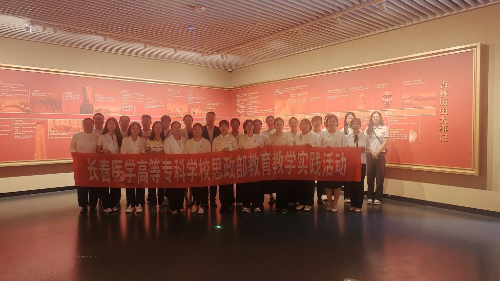 在纪念中国人民抗日战争暨世界反法西斯战争胜利 80 周年的重要时刻,为深切缅怀革命先辈、赓续红色血脉,进一步提升思政课育人实效,8月28 日上午,长春医学高等专科学校全体思政课教师在副校长刘洋的带领下,走进吉林省近现代史展,开展沉浸式研学活动。