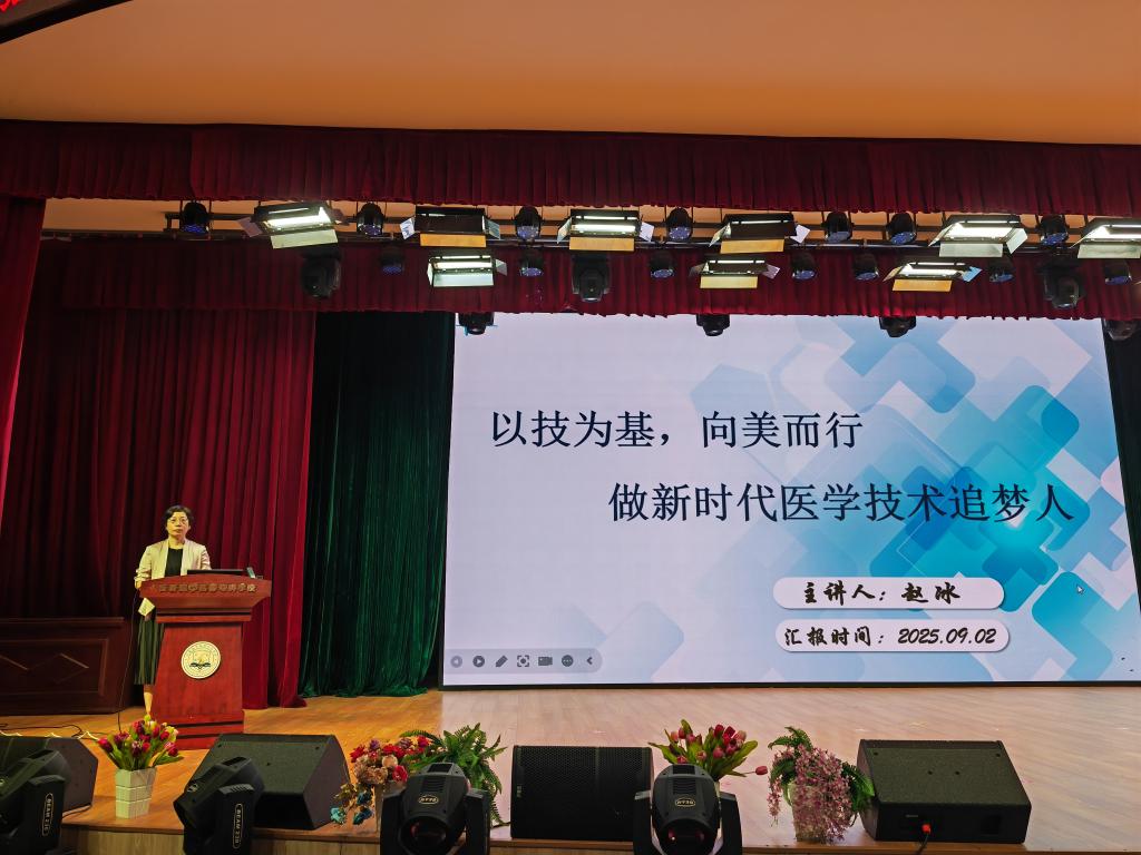 作为本次主题教育的亮点,“院长讲堂”由学院负责人赵冰主讲。她以“以技为基,向美而行,做新时代医学技术追梦人”为主题,围绕学院概况、专业布局、大学学习的深层价值、自我成长路径设计、综合素养提升策略以及科学就业理念培育等维度展开深入讲解。讲座不仅宏观呈现学院整体发展图景,更从学生个体成长出发,勉励新生珍惜大学时光,以系统化规划推动学业与职业协同发展。