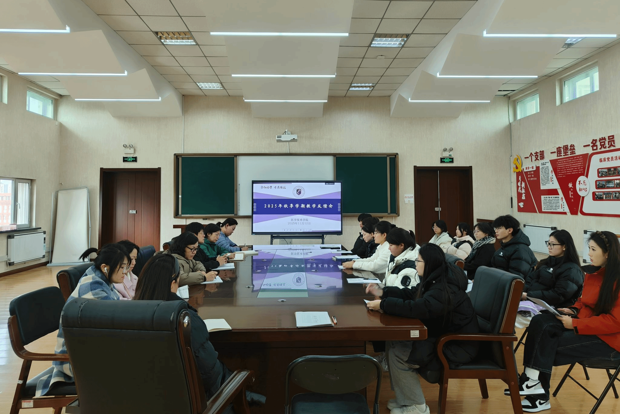为精准把握教学一线动态,畅通师生常态化沟通渠道,持续提升人才培养质量,11月12日中午,医学技术学院在善学楼546会议室召开2025年秋季学期教学反馈会。学院负责人赵冰、院办主任刘晓雅、全体教研室主任、各专业带头人(负责人),以及2024级、2025级各班学习委员参加会议。会议由学院教学负责人郑海筝主持。