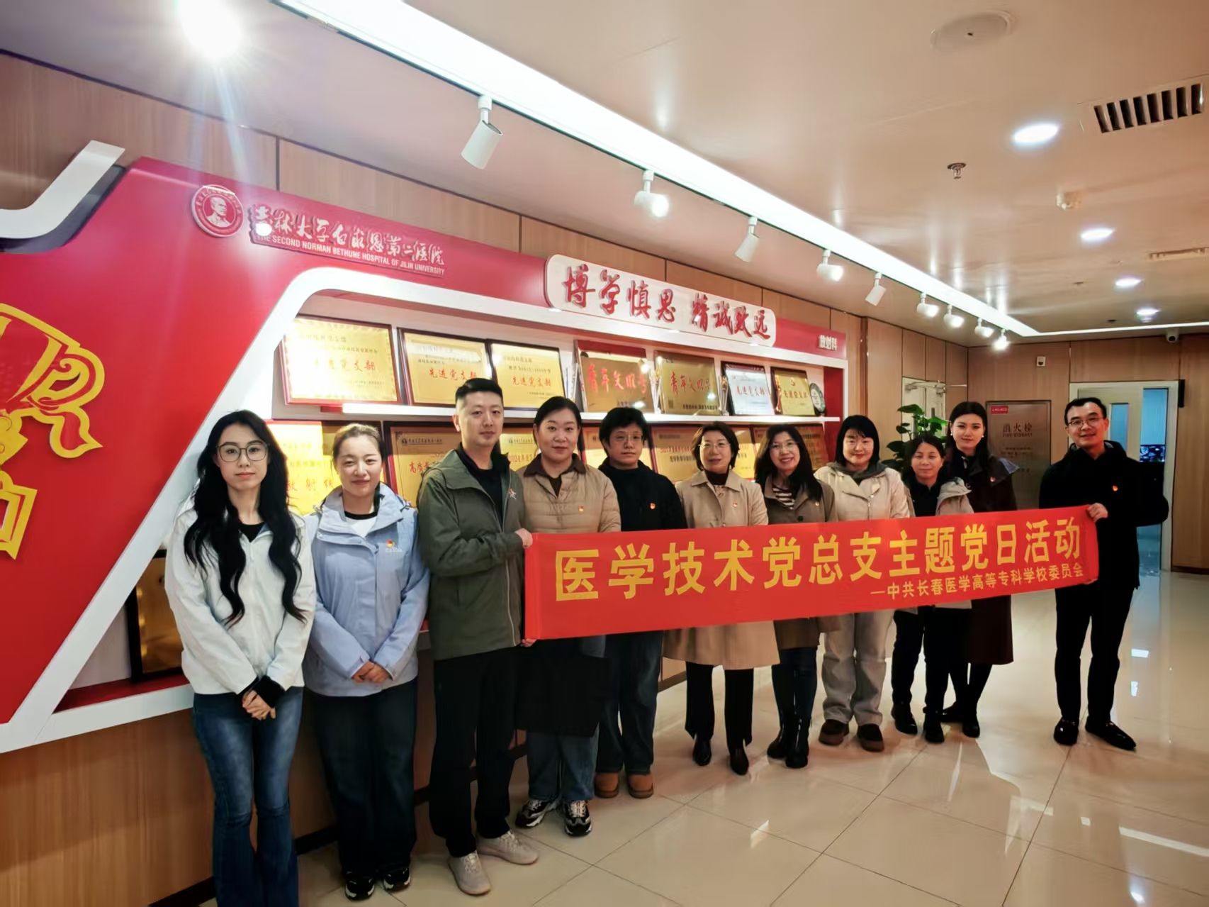 活动伊始,医学技术党总支全体党员与吉大二院放射科教工党支部党员共同参观了吉林大学第二医院放射科党建文化长廊。长廊以图文并茂、实物展示的形式,全面展现了放射科党支部在党组织建设、党员教育管理、党建业务融合、文化学科发展等方面的实践成果与特色亮点。党员们边走边看、边听边记,深入学习基层党建阵地建设的创新思路与务实举措,直观感受党建引领学科高质量发展的生动实践,进一步拓宽了党建工作视野、激发了党建工作思路。