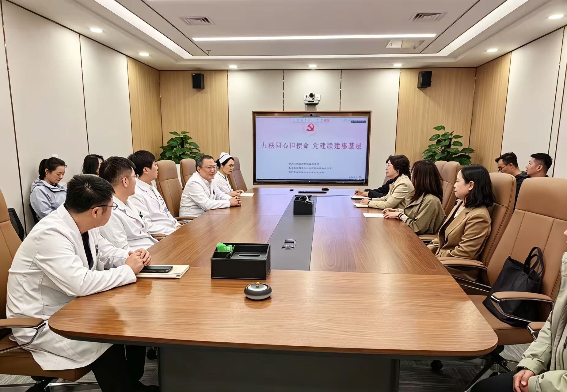 为深入贯彻党建引领高质量发展要求,接续九秩荣光、强化使命担当,深化党建联建与基层服务融合,4月16日中午,医学技术党总支以“九秩同心担使命、党建联建惠基层”为主题,联合吉林大学第二医院放射科教工党支部、共建联建单位图们市石岘镇中心卫生院党支部,共同开展 4 月主题党日活动。三方党组织全体党员以“线下 + 线上” 相结合的形式参会,共忆九秩征程、共话党建经验、共谋发展新篇。