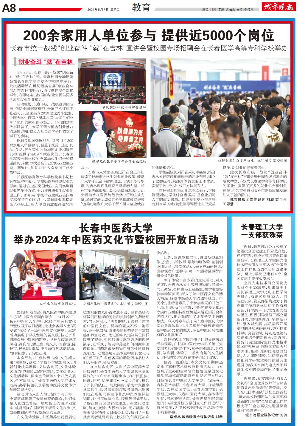长春市统一战线“创业奋斗 ‘就’在吉林”宣讲会暨校园专场招聘会在长春医学高等专科学校举办