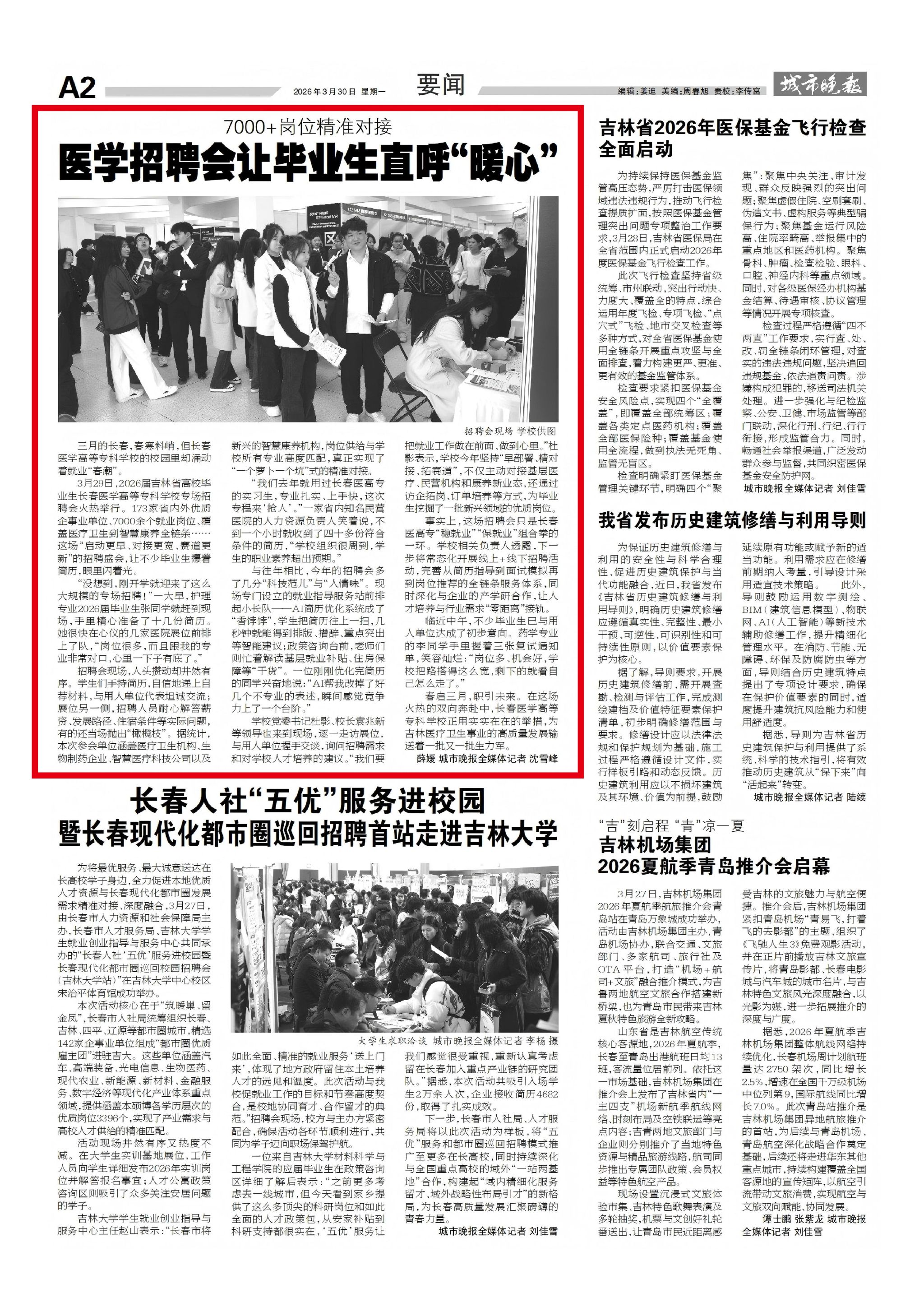 三月的长春,春寒料峭,但长春医学高等专科学校的校园里却涌动着就业“春潮”。