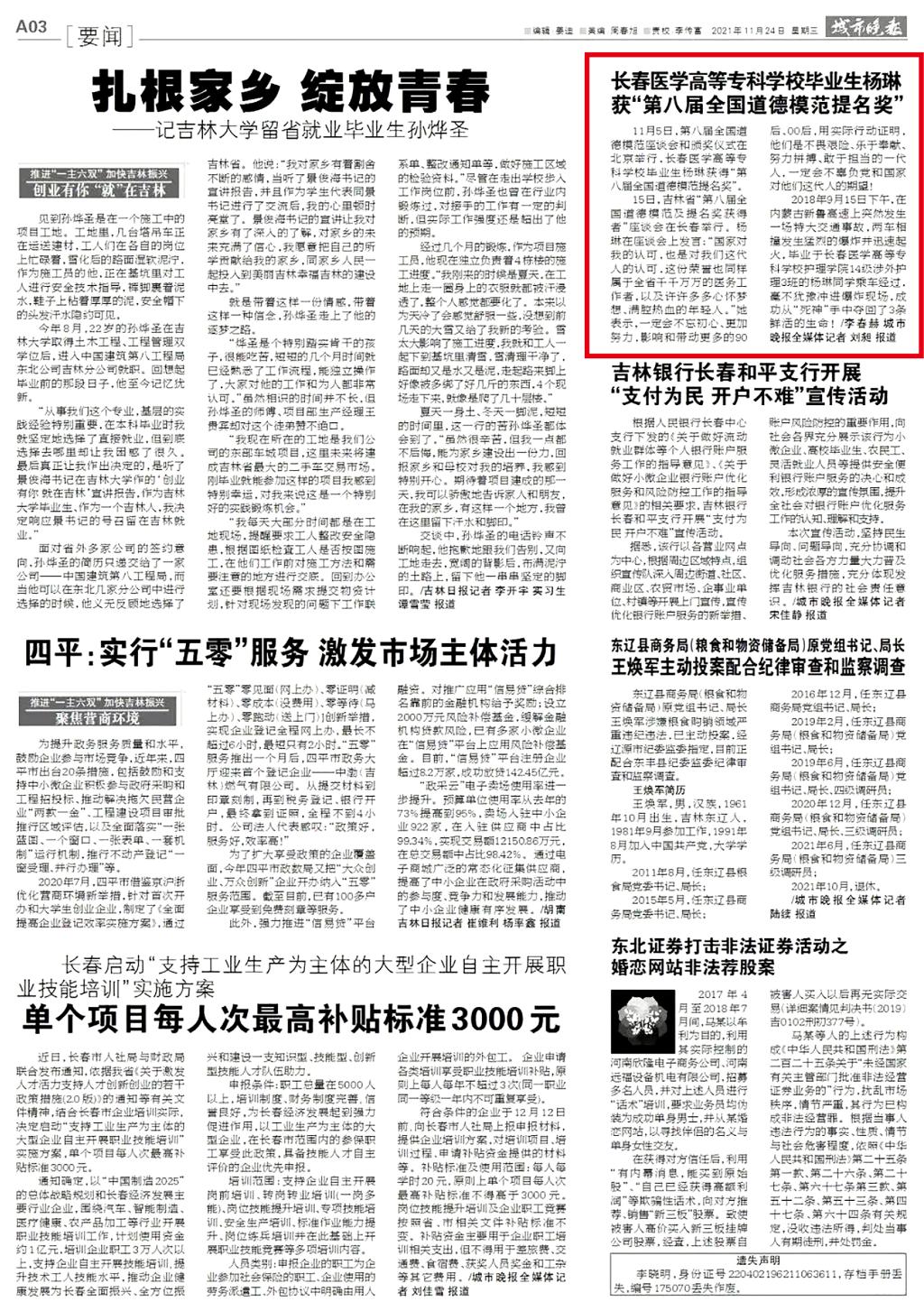 长春医学高等专科学校优秀毕业生杨琳获“第八届全国道德模范提名奖”