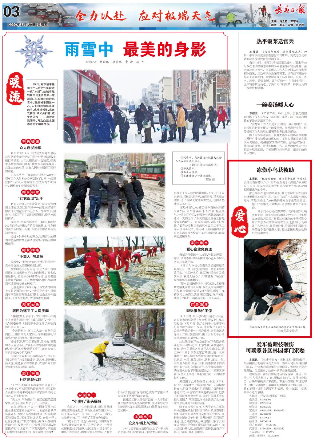 本报讯 (记者陈丽雅 通讯员李春赫 李雪)在极端雨雪冰冻天气下,野外生存的小动物也“举步维艰”。19日,长春医学高等专科学校师生齐出动,救助校园里冻伤的小鸟。
