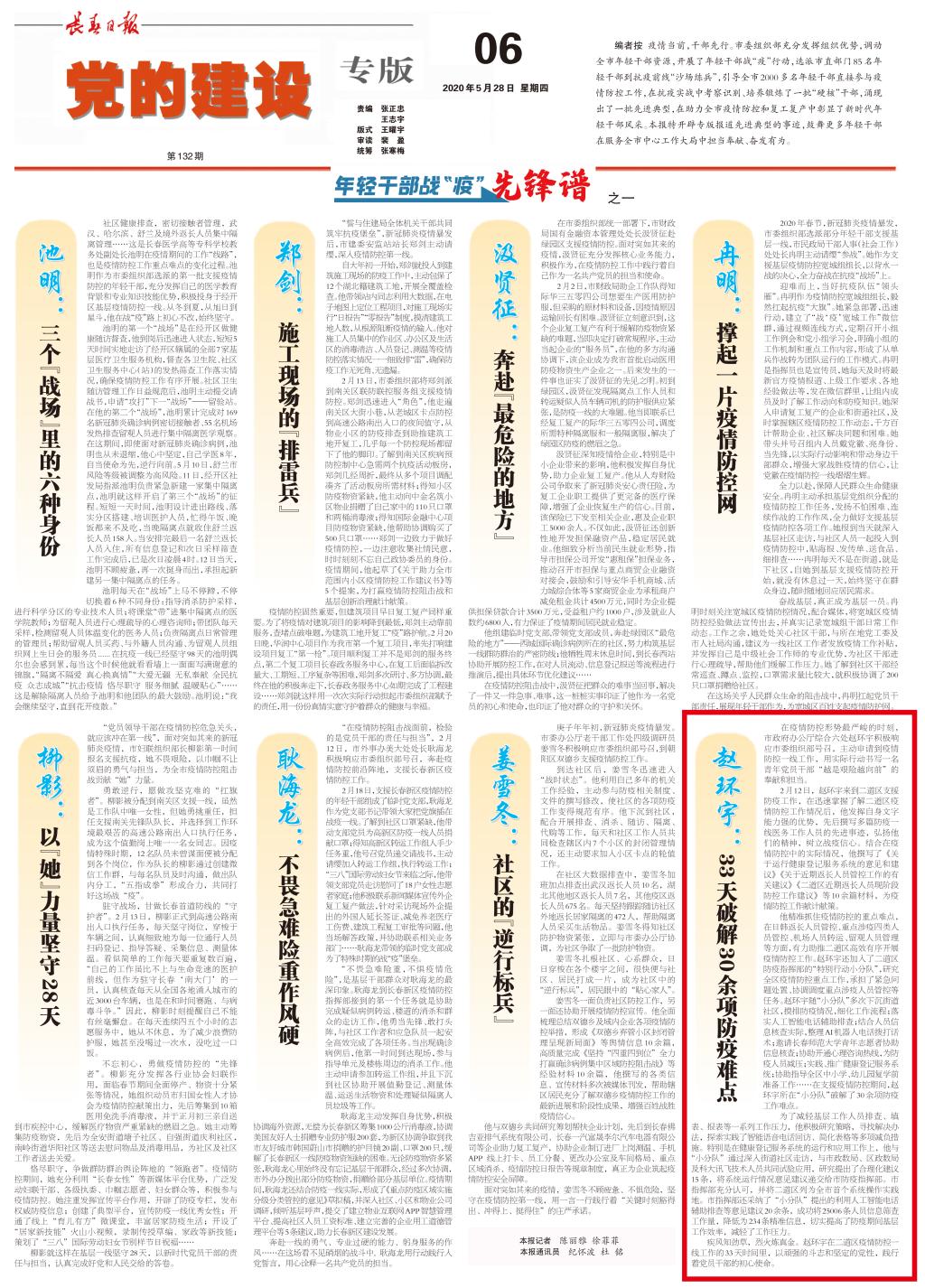 社区健康排查,密切接触者管理,武汉、哈尔滨、舒兰及境外返长人员集中隔离管理……这是长春医学高等专科学校教务处副处长池明在疫情期间的工作“线路”,也是疫情防控工作重点难点的变化过程。池明作为市委组织部选派的第一批支援疫情防控的年轻干部,充分发挥自己的医学教育背景和专业知识技能优势,积极投身于经开区基层疫情防控一线。从冬到夏,从旭日到星斗,他在战“疫”路上初心不改,始终坚守。